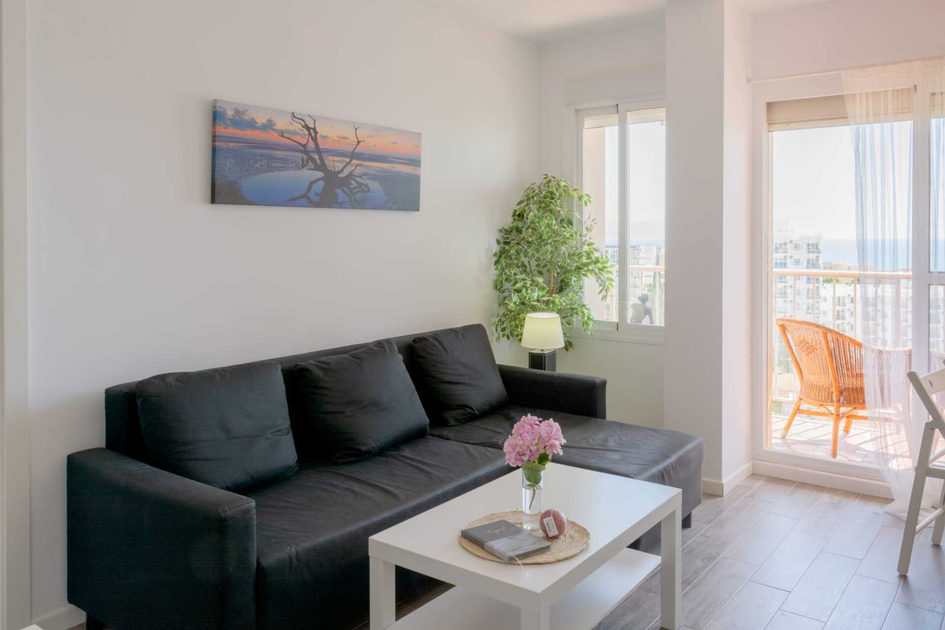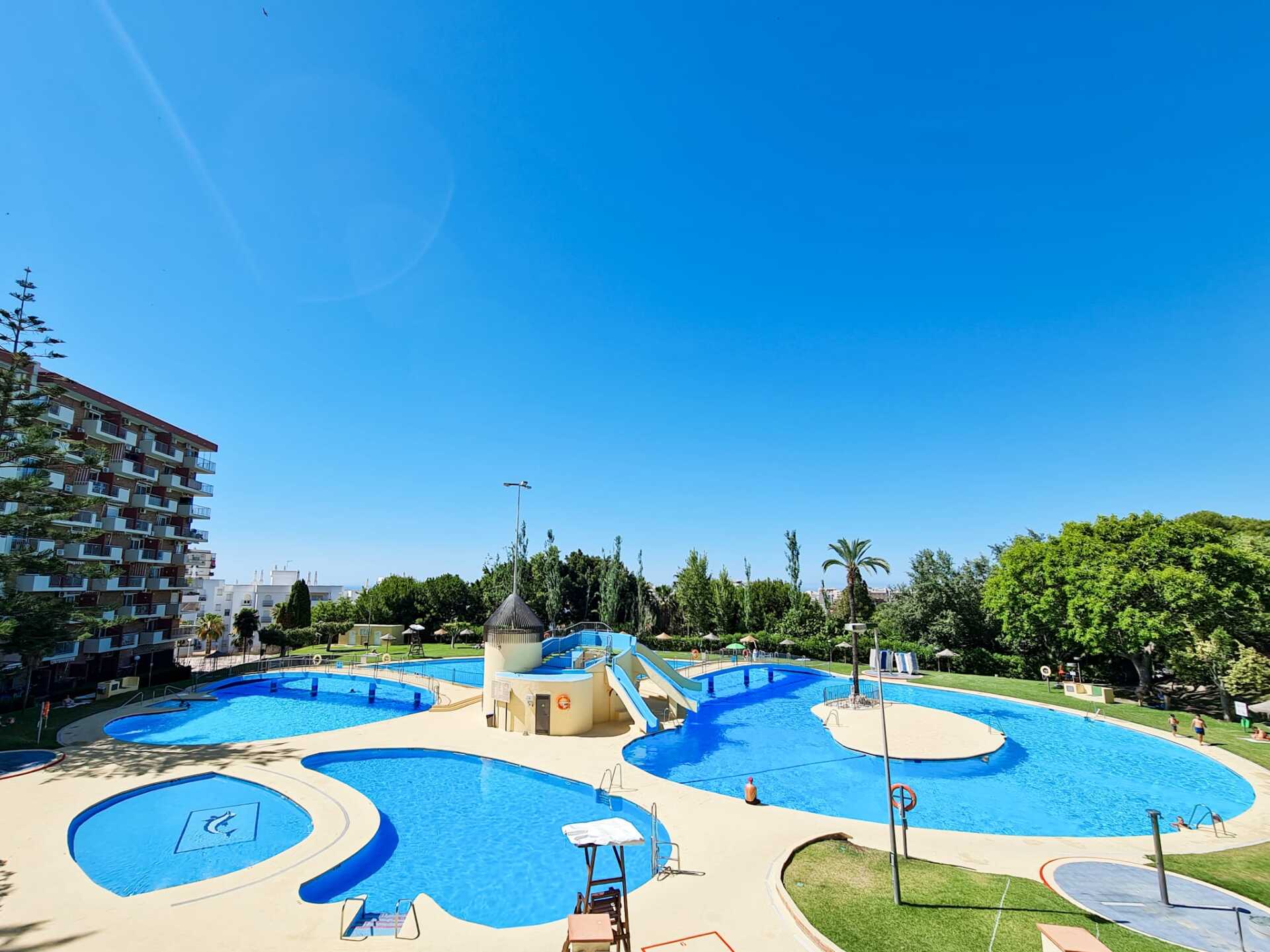 Apartamento de 1 dormitorio con balcón con vistas al mar, dormitorio con cama doble y en salón sofá cama, cocina independiente. Recepción las 24 horas, cuenta con piscinas y parques.