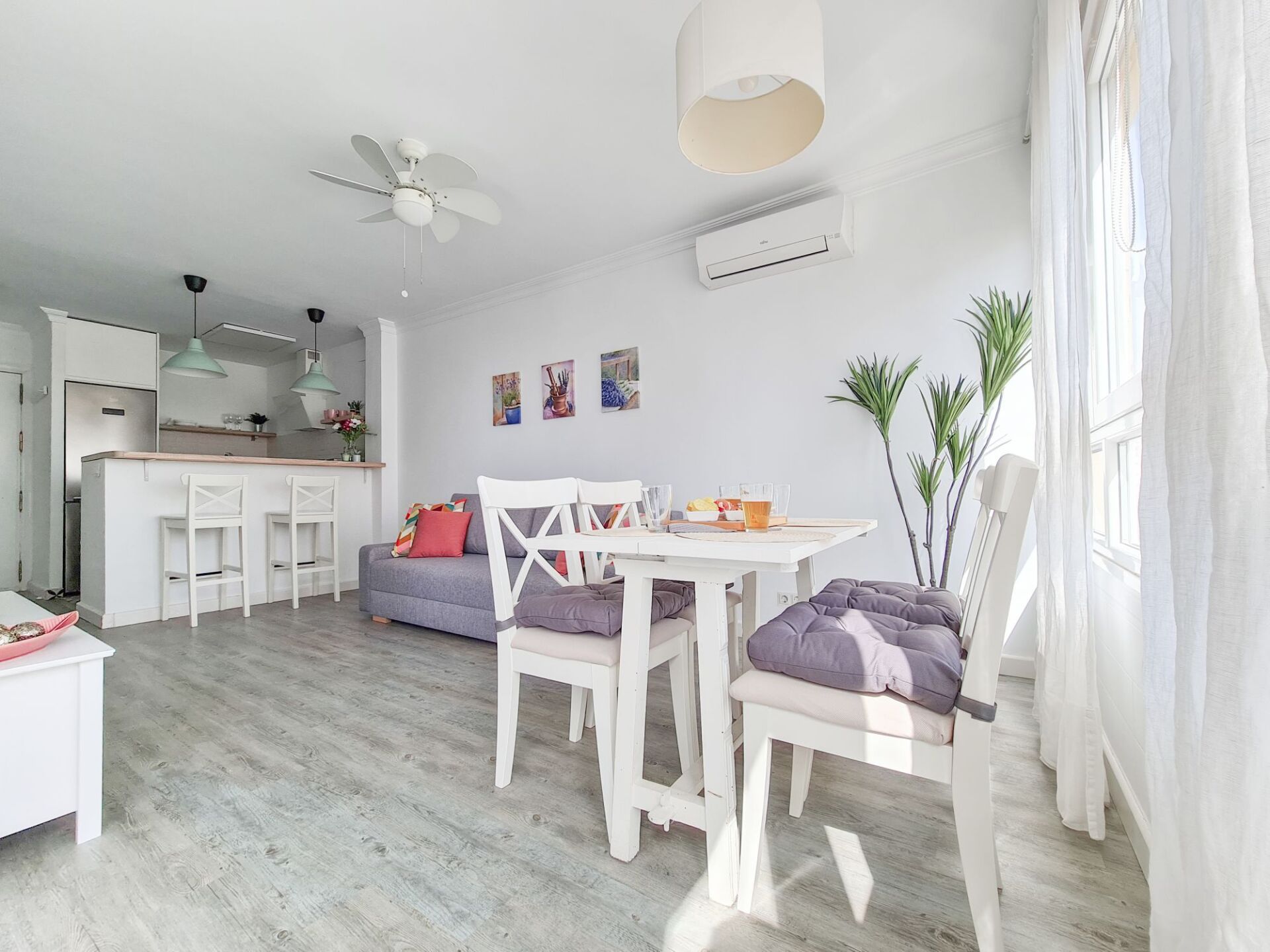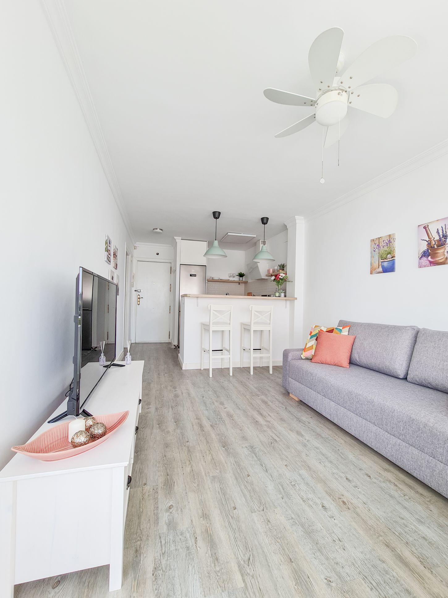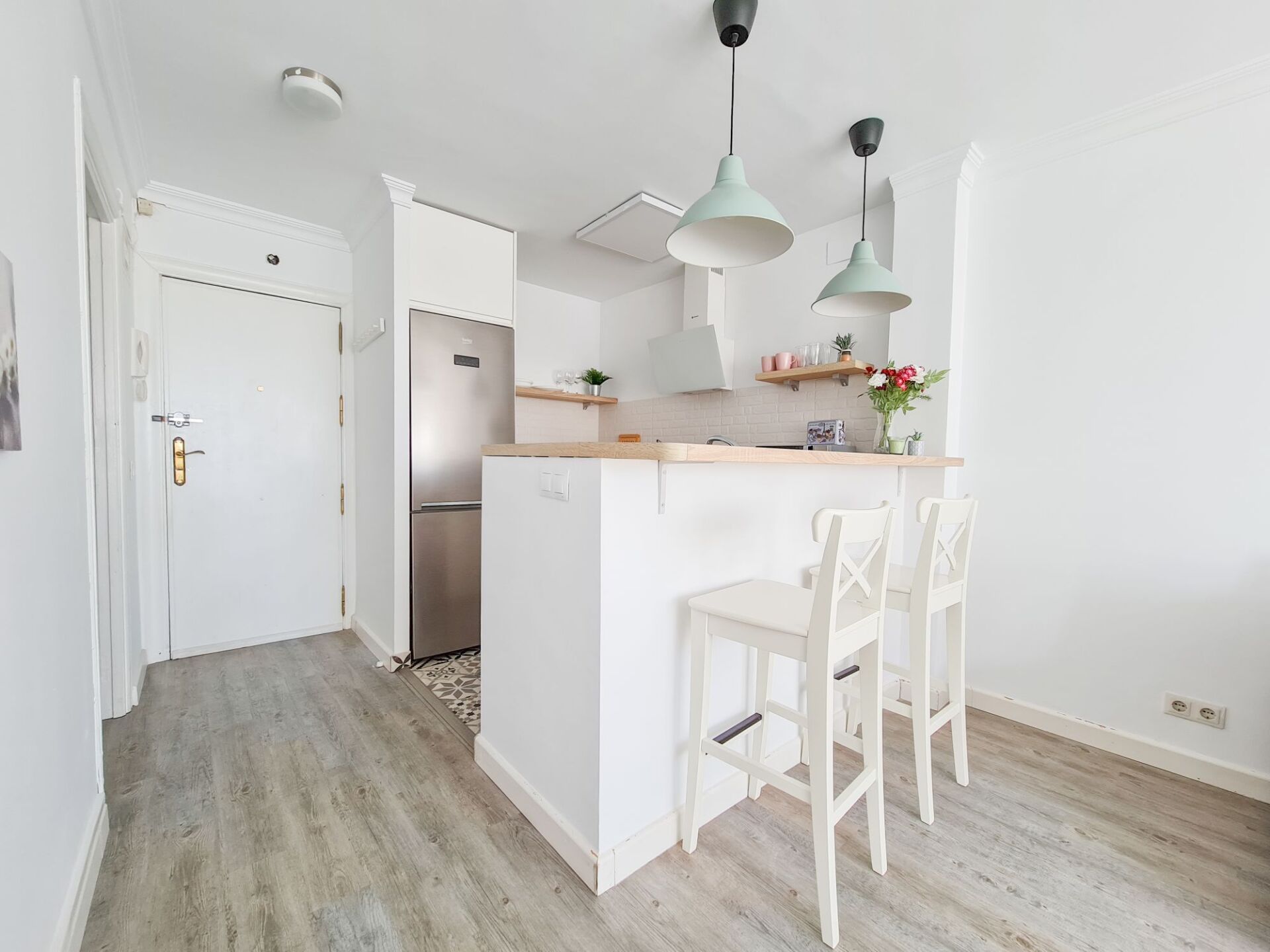 Apartamento de 1 dormitorio con cama doble, gran espacio de guardado, sofá cama en salón, cocina integrada y balcón integrado. Edificio con parque y piscina, supermercado dentro del edificio.