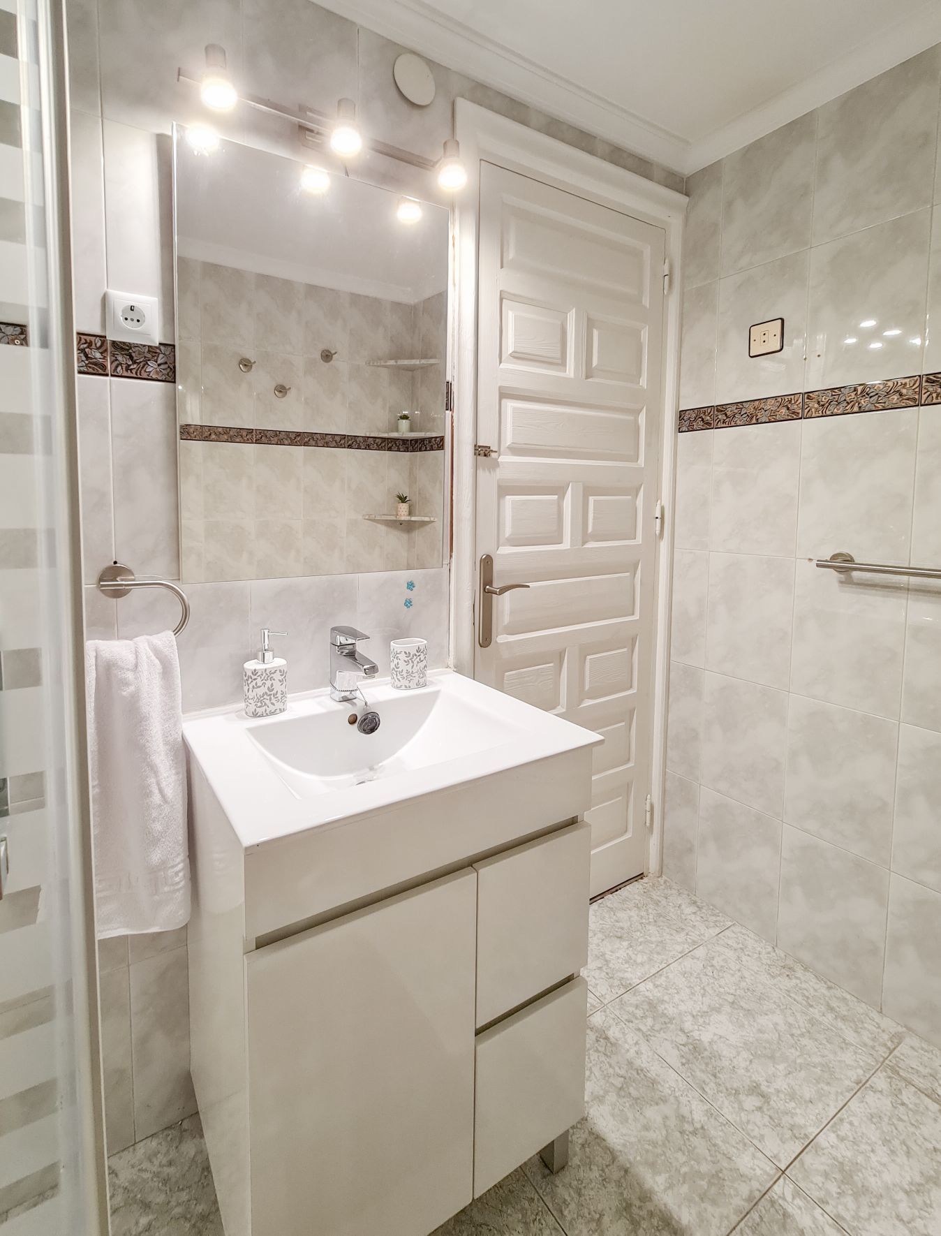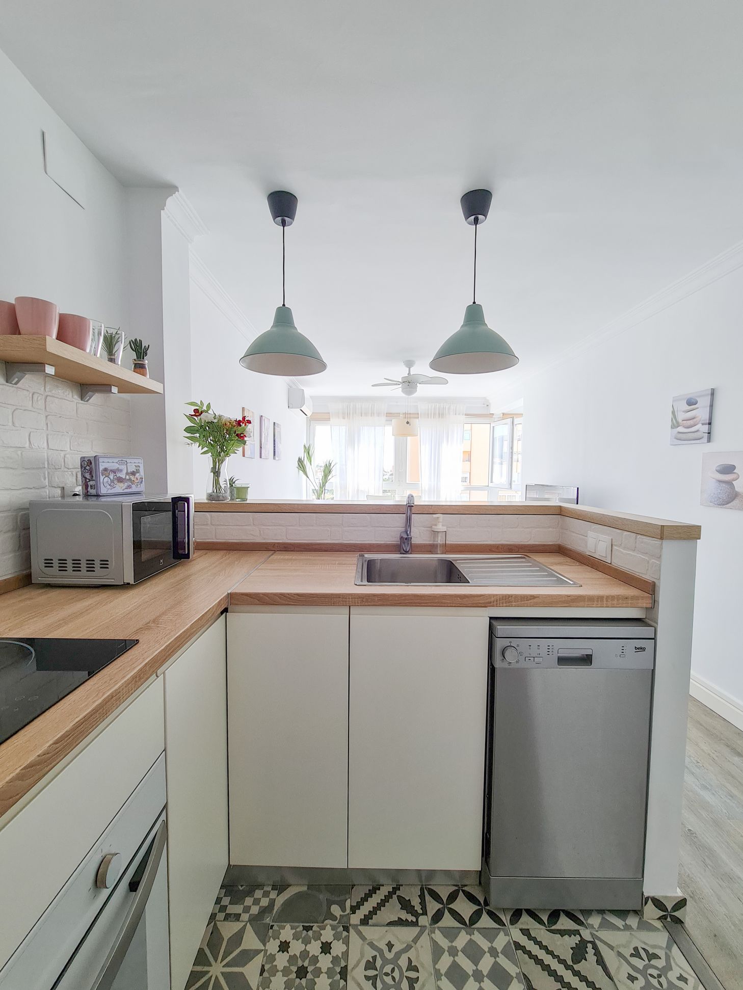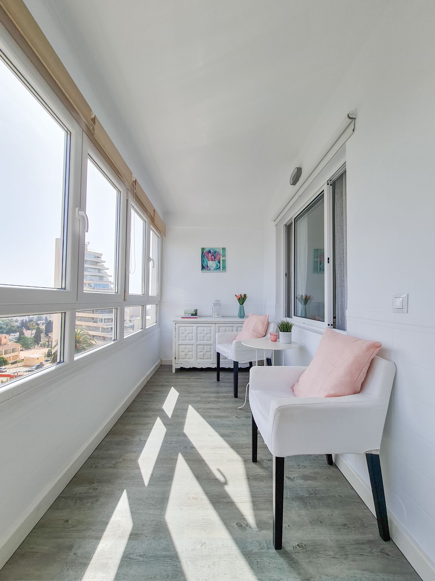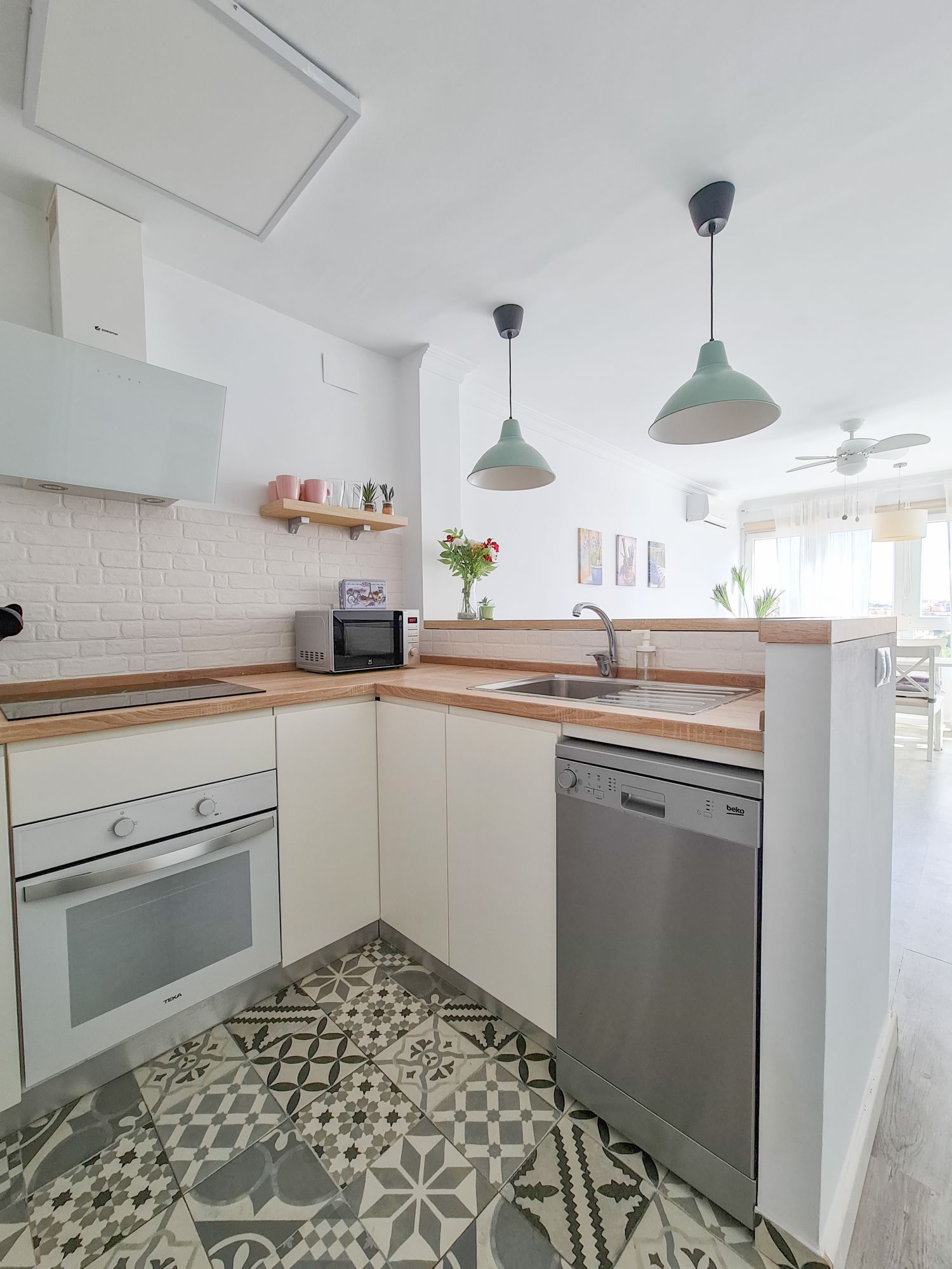 Apartamento de 1 dormitorio con cama doble, gran espacio de guardado, sofá cama en salón, cocina integrada y balcón integrado. Edificio con parque y piscina, supermercado dentro del edificio.