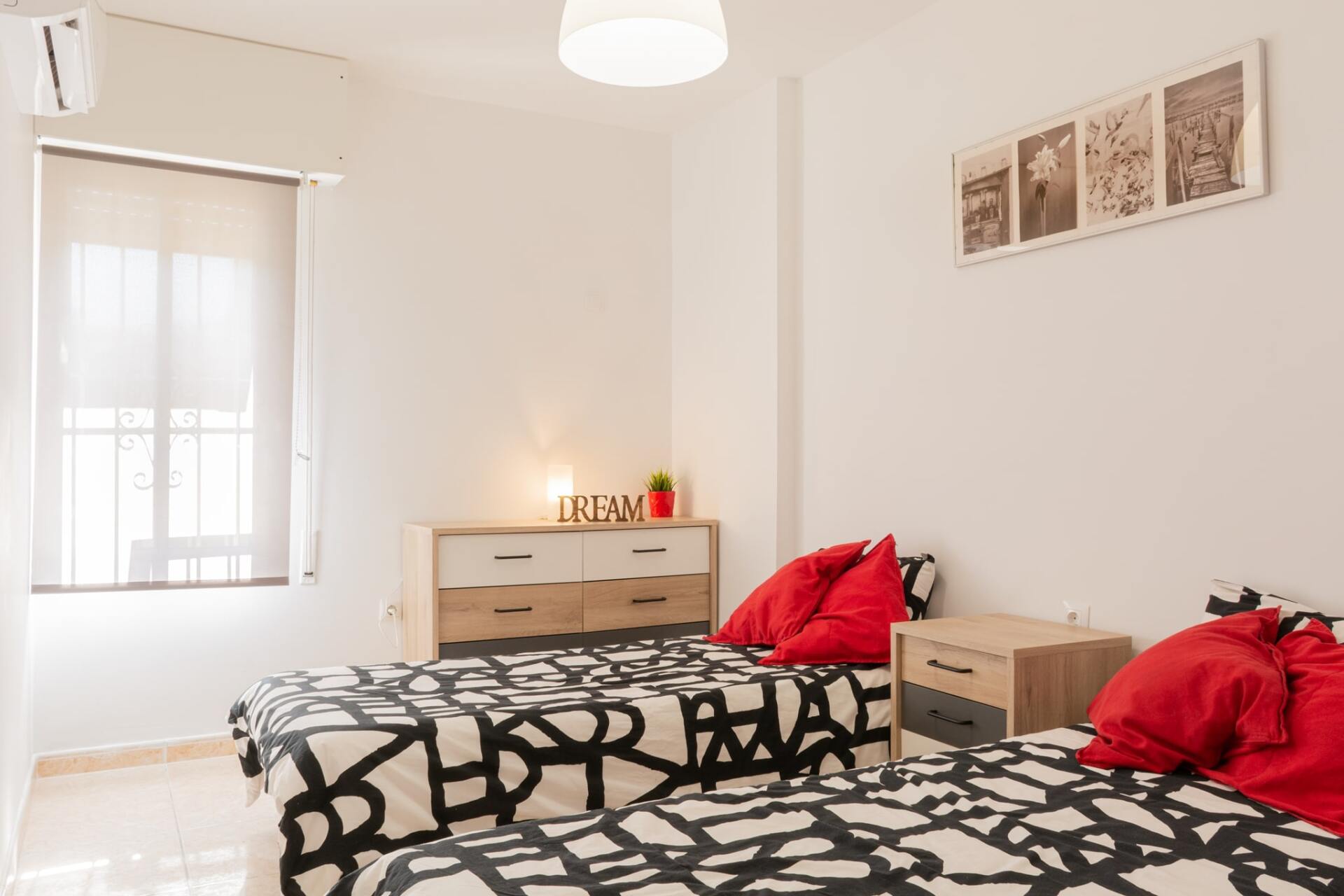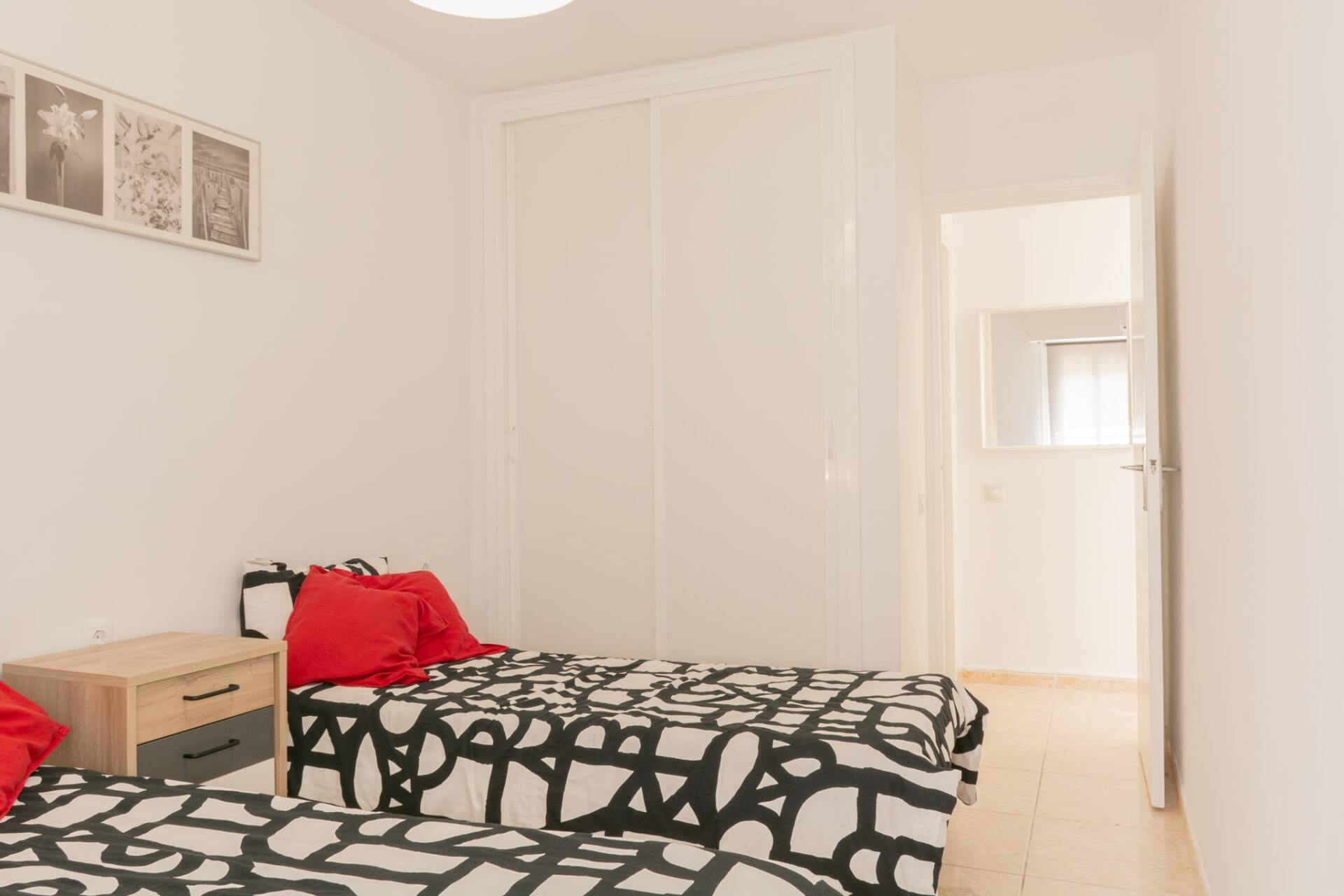 Apartamento de 1 dormitorio con camas individuales, cuenta con sofá cama en salón, cocina integrada y baño con bañera. Tiene balcón abierto. Recepción las 24 horas, cuenta con piscinas y parques.
